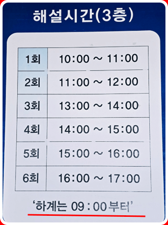 - 무료입장: 6세 이하 영유아, 65세 이상 어르신, 국가유공자, 장애인은 무료입장입니다.