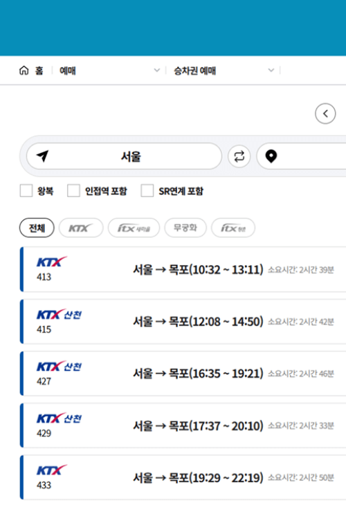 - 1단계: 서울 용산역 → 목포역 (약 2시간 30분~3시간)