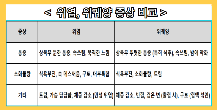 ※ 위염, 위궤양의 주요 증상은 다음과 같습니다.