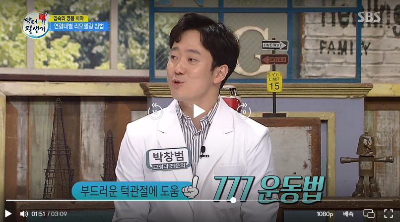 - 간단한 턱 스트레칭이나 이완 운동을 꾸준히 해줍니다. (예: 777 운동법 - 앞니 뒤쪽 입천장에 혀를 대고 턱 통증이 없는 범위 내에서 입을 최대한 벌린 후 7초 유지, 7번 반복, 7세트)